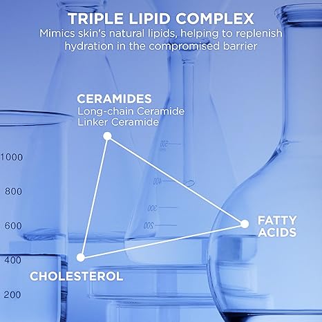 TRIPLE LIPID COMPLEX: A powerful blend of ceramides, fatty acids, and cholesterol helps strengthen the skin barrier, locking in moisture and protecting against external aggressors.