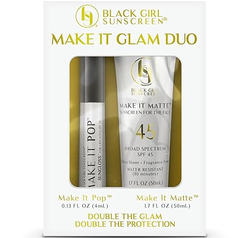 Black Girl Sunscreen ? Face & Lip Sunscreen Make It Glam Duo ? 1 SPF 45 Make it Matte Clear Sunscreen for Face & 1 Make it Pop SPF 50 Sungloss for Protected Poppin’ Lips, White